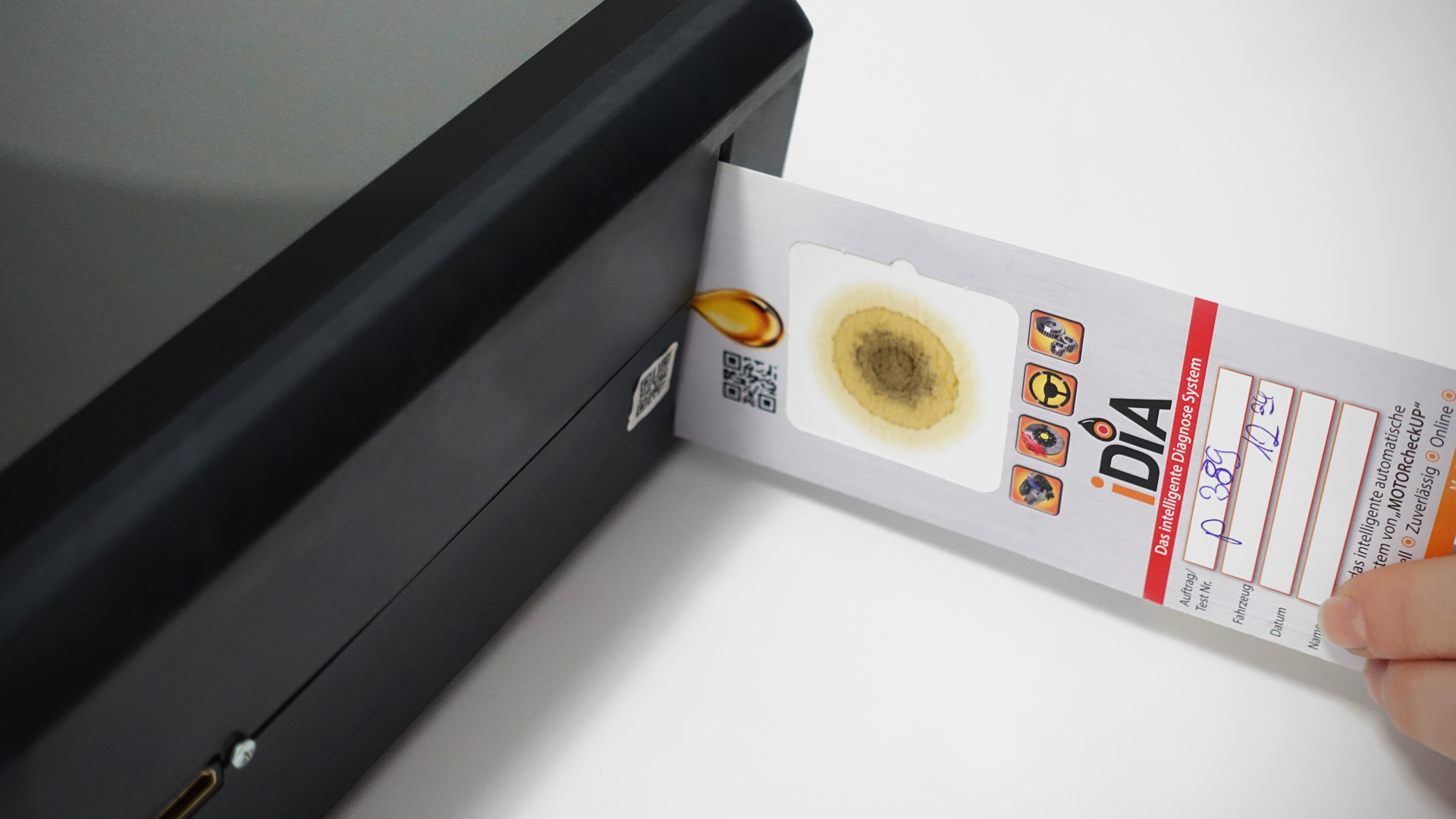 Previously, the user evaluated the tests using color tables. Although this is simple and just as reliable, it sometimes creates a certain level of inhibition for users. With the development of “iDiA”, MOTORcheckUP is now digital: the user now only has toRegister the individual, i.e. unique QR code on our homepage and enter a few vehicle details. He then sends the finished test to us for digital evaluation and receives the test result in the form of a PFD data sheet via the Internet. The evaluation software was developed with the help of thousands of oil samples and practical cases in special laboratorieswere analyzed, “trained”. The intelligent software recognizes – based on these laboratory results – colors and structures of the test images and evaluates them – based on scientific studies.