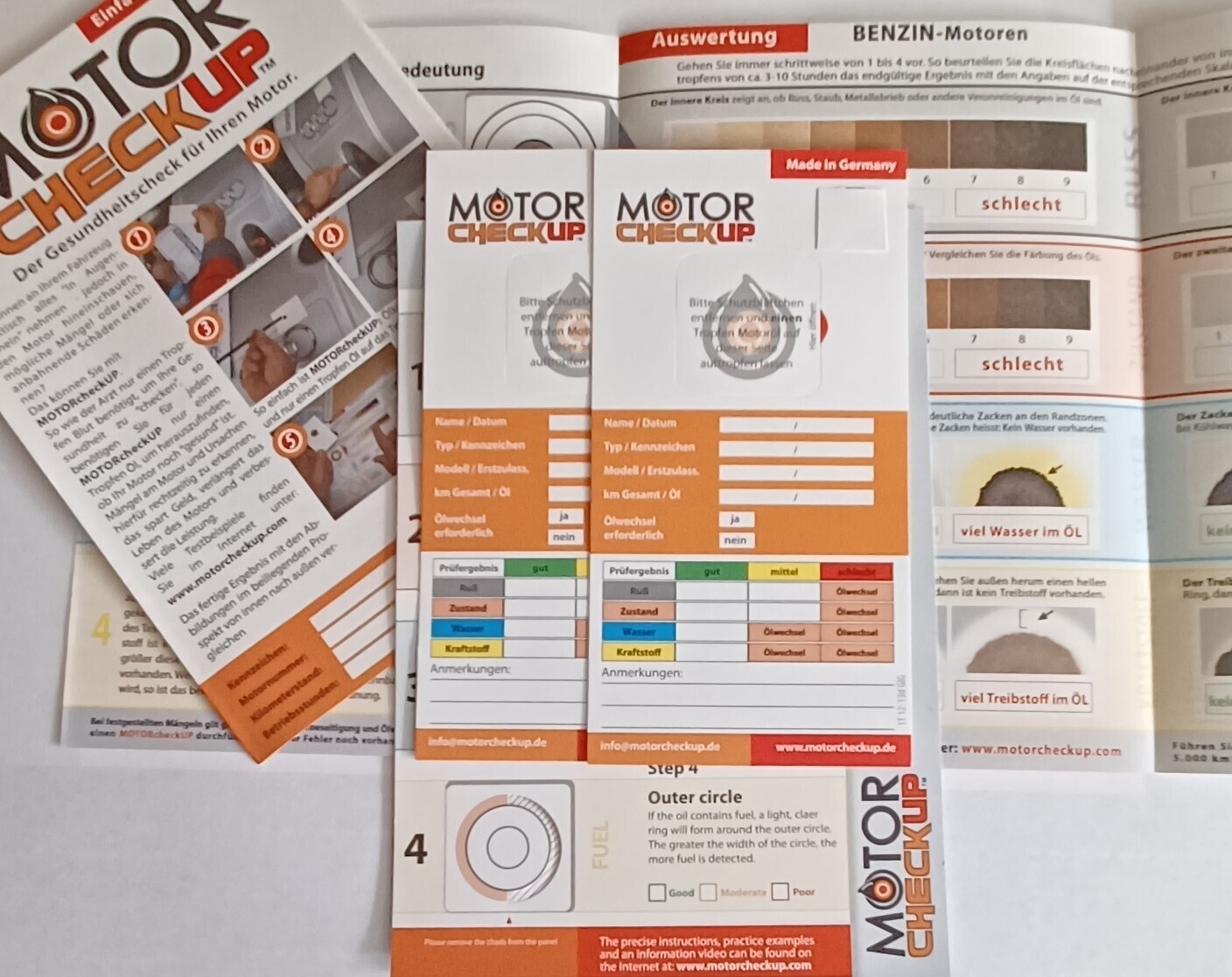 For larger customers, we offer packages of 25/50/100 pieces each, as well as evaluation brochures and templates to explain the results to the customer. The test can, for example, be offered by workshops as an additional service or used as a marketing measure. It provides quick and reliable information about the health of the engine and the condition of the oil.